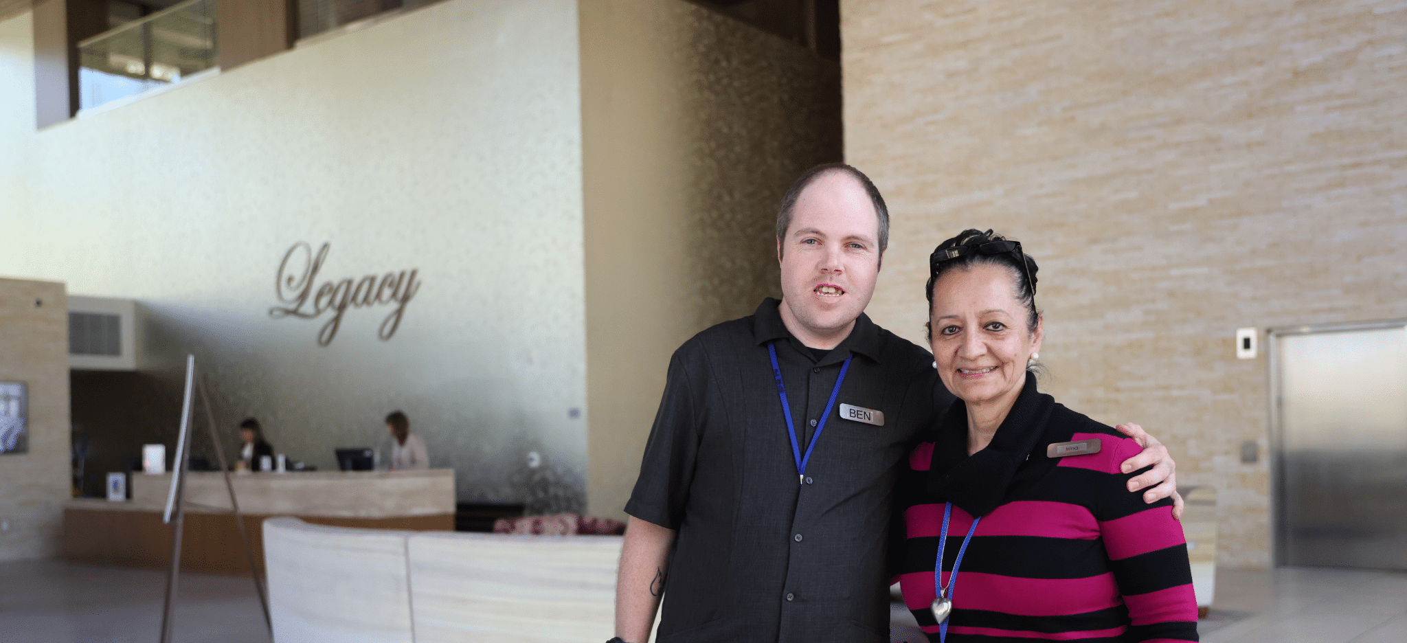 Today, housekeeping teams provided by PRIDE Industries not only keep Legacy spotless, but they also bring a positive attitude to work every day. A standout example of this is Ben Godown, who was hired in a custodial role through PRIDE Industries. Ben has become an integral part of the Legacy Resort team, and his impact can be seen and felt by everyone on staff.