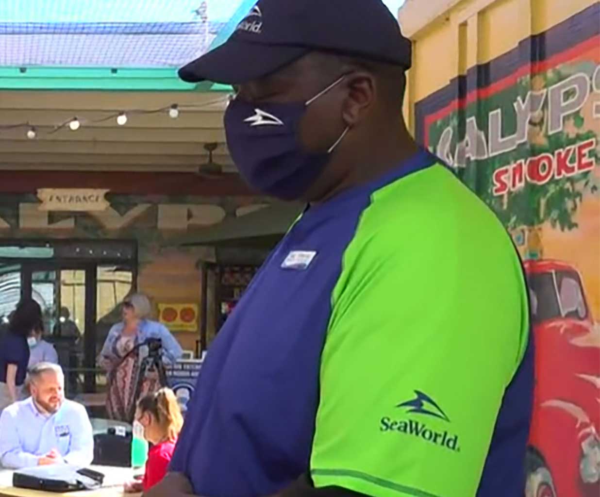 CBS8 News also interviewed Demetrius Griggs, who works as a host at Sea World San Diego’s Calypso Bay Restaurant. He enjoys greeting customers and keeping the outside area clean for visitors. SeaWorld San Diego has partnered with PRIDE Industries for over 30 years to hire people with disabilities, like Demetrius, throughout their park.