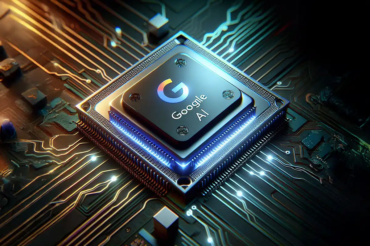 A close-up of Google’s proprietary AI chip on a stylized circuit board
