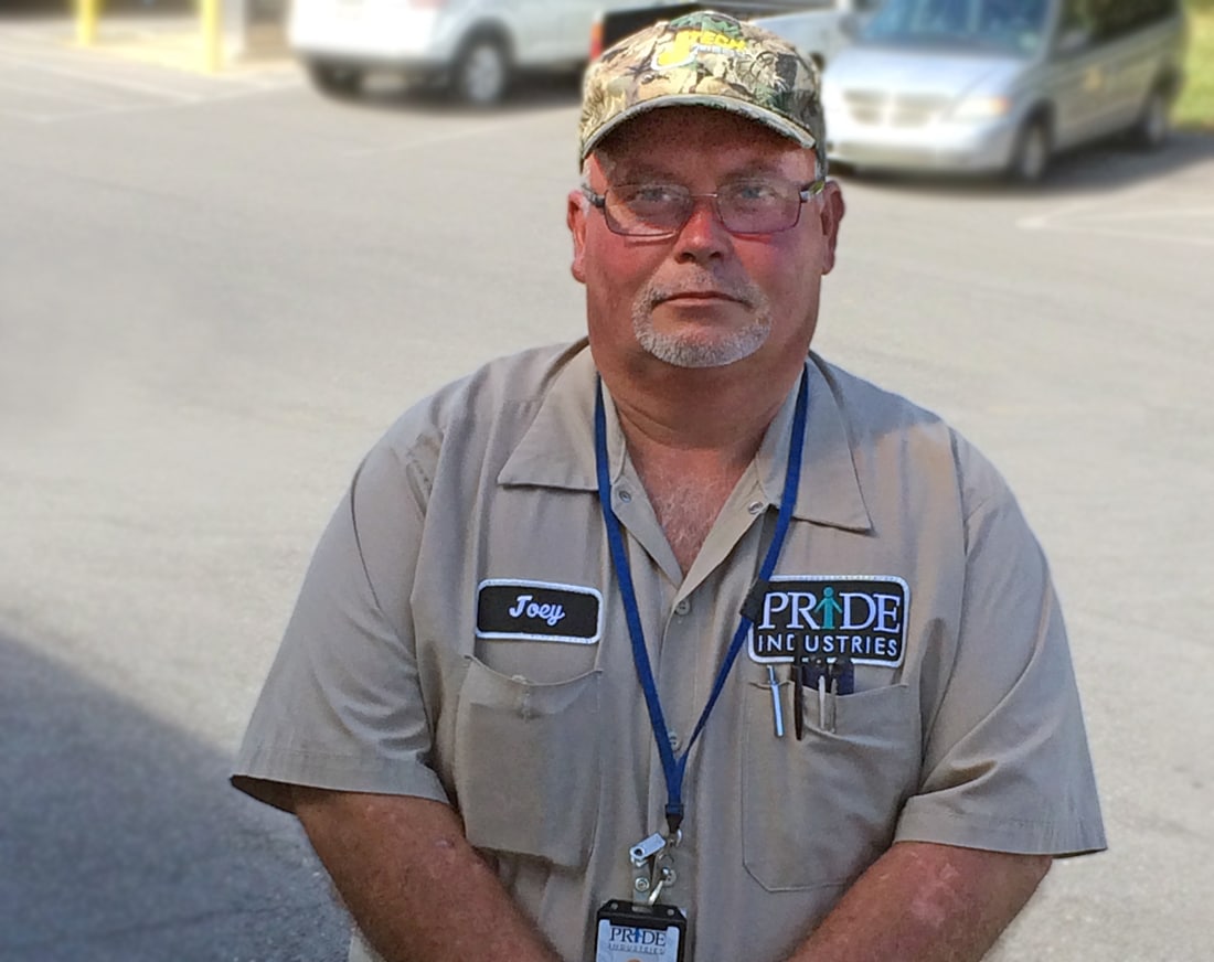 Joey worked closely with his LRS counselors to manage his depression and maintain sobriety. Even so, searching for a new career was not an easy task; Joey struggled to get an interview and was unable to complete a GED program or learn another trade. Fortunately, in 2014 LRS referred Joey to a job training program at PRIDE Industries’ contract at Ft. Polk.