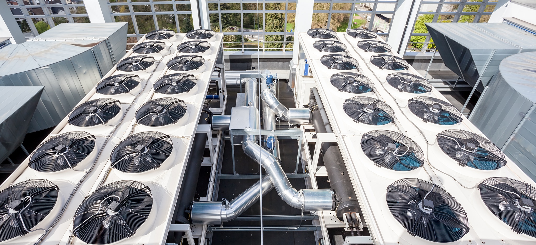 High-efficiency systems are engineered to deliver more comfort, better moisture control, improved indoor air quality, and quieter operation. One of the primary technologies in commercial applications is variable-refrigerant-flow (VRF) heat pumps for heating and cooling. These devices are similar to air conditioners in the way they use refrigerants instead of air, but they’re different in that they can both heat and cool the air, replacing the need for a separate system for heat.